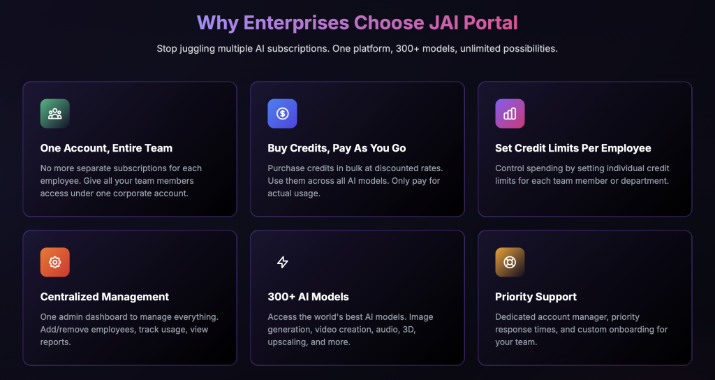 As AI tools continue to expand, users and companies face a growing challenge: multiple platforms, separate subscriptions, scattered workflows, and rising costs. At Joygame, we built a solution that eliminates this complexity: JAI Portal.